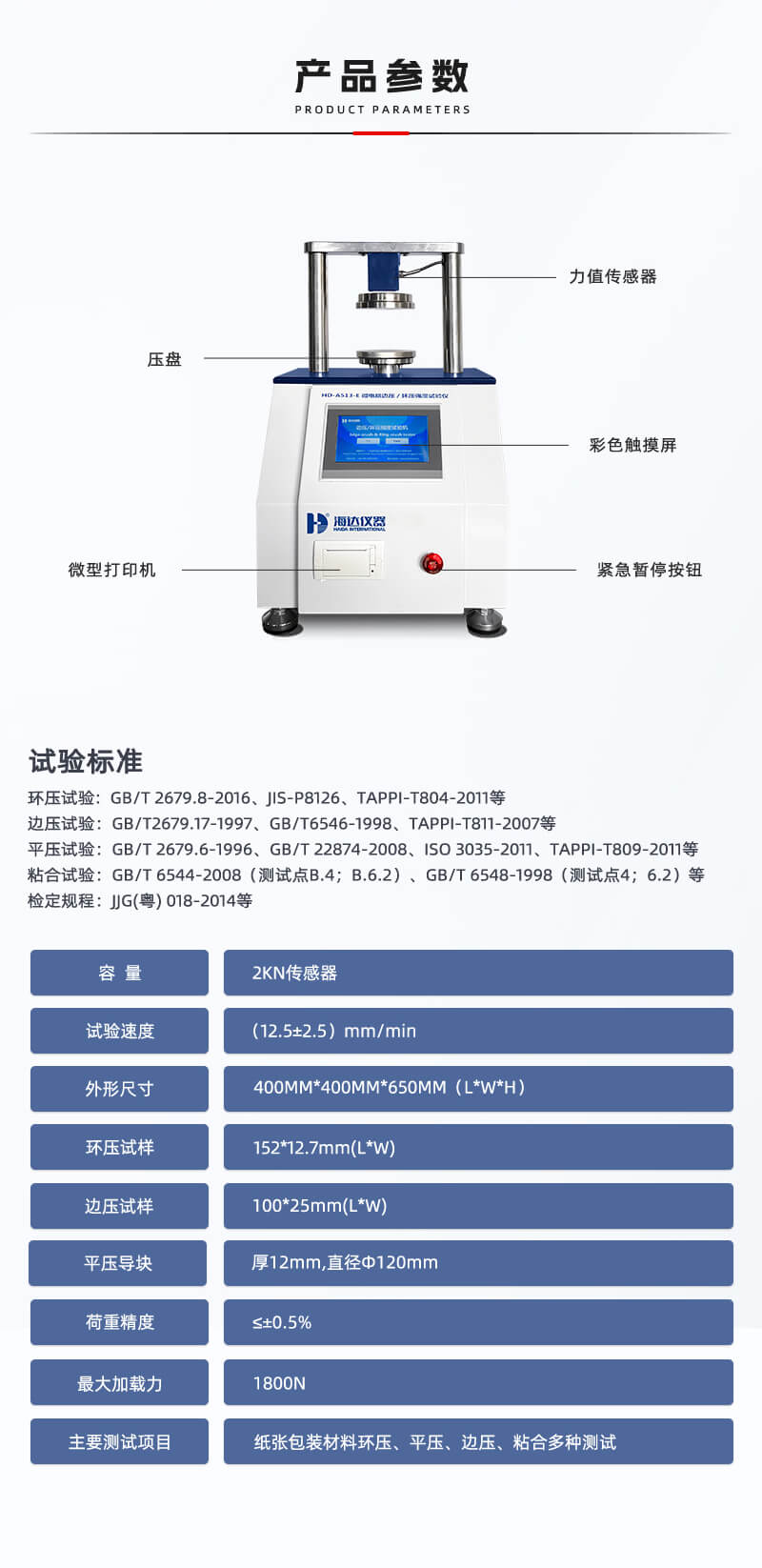 紙張包裝材料環壓、平壓、邊壓、粘合多種測試 |