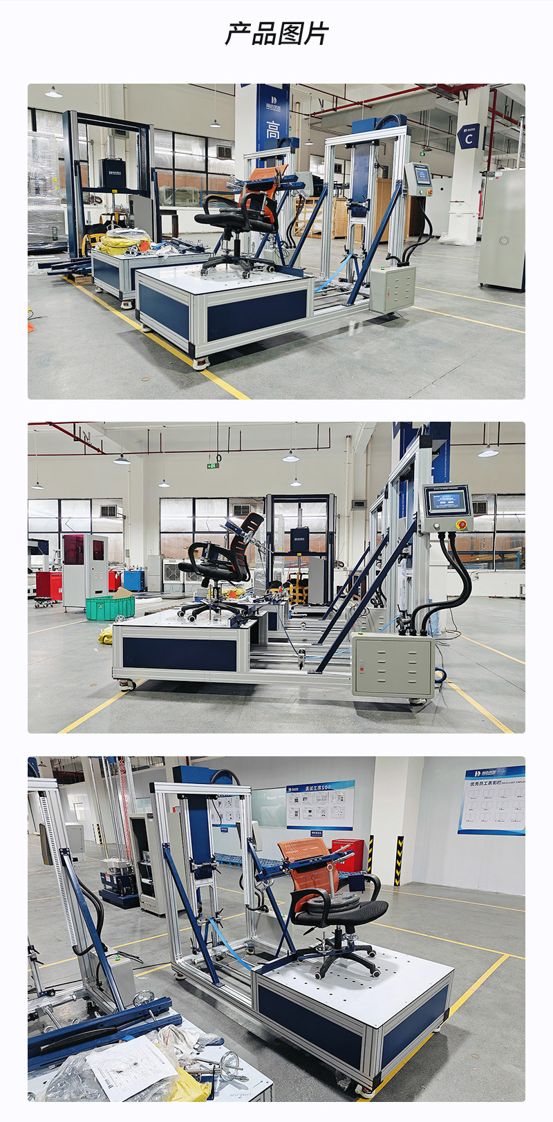 椅子結構強度與拉背疲勞試驗儀適用于檢測辦公椅靠背,從而評估椅子承受壓力的能力,模擬辦公椅多次使用后其結構件的完整性和功能是否缺失