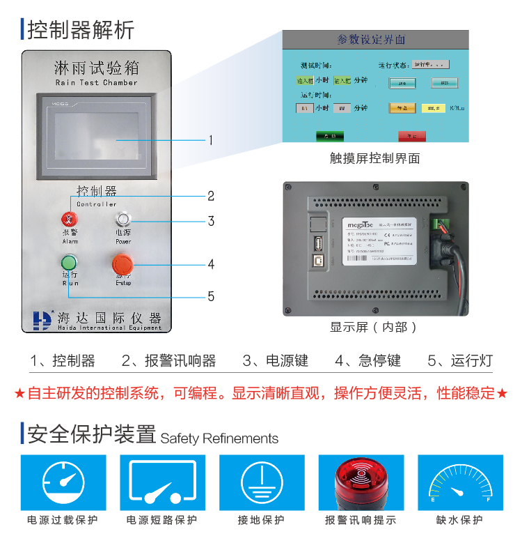強(qiáng)噴水試驗(yàn)箱IPX5-6適用于測(cè)試產(chǎn)品在淋雨的氣候環(huán)境下的貯存、運(yùn)輸和使用時(shí)的性能試驗(yàn),該設(shè) 備主要用于對(duì)電工電子產(chǎn)品、燈具、電柜、電器元件、汽車(chē)、摩托車(chē)及其零部件等產(chǎn)品 在模擬淋雨的氣候條件下,對(duì)產(chǎn)品的物理以及其它相關(guān)性能進(jìn)行測(cè)試。